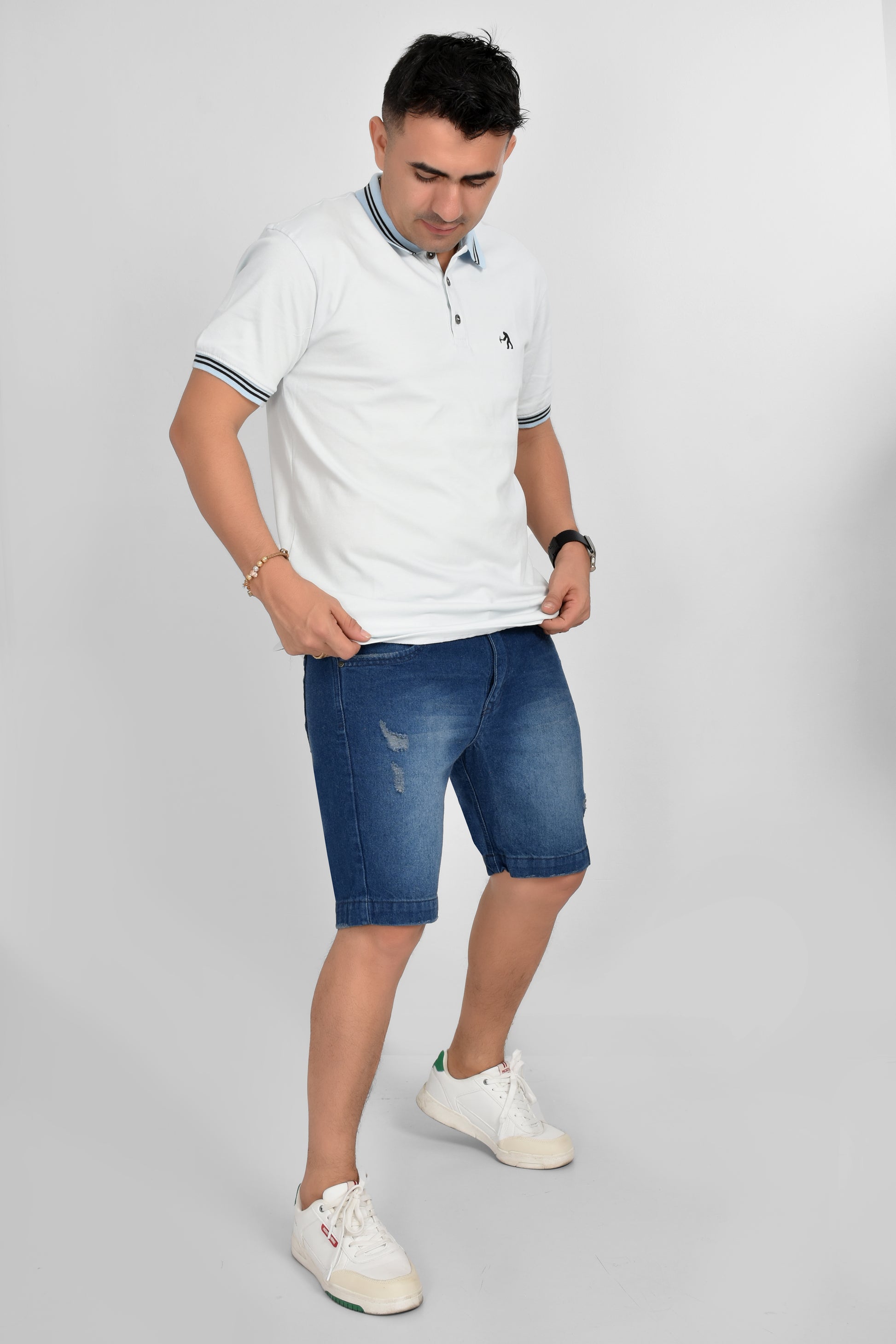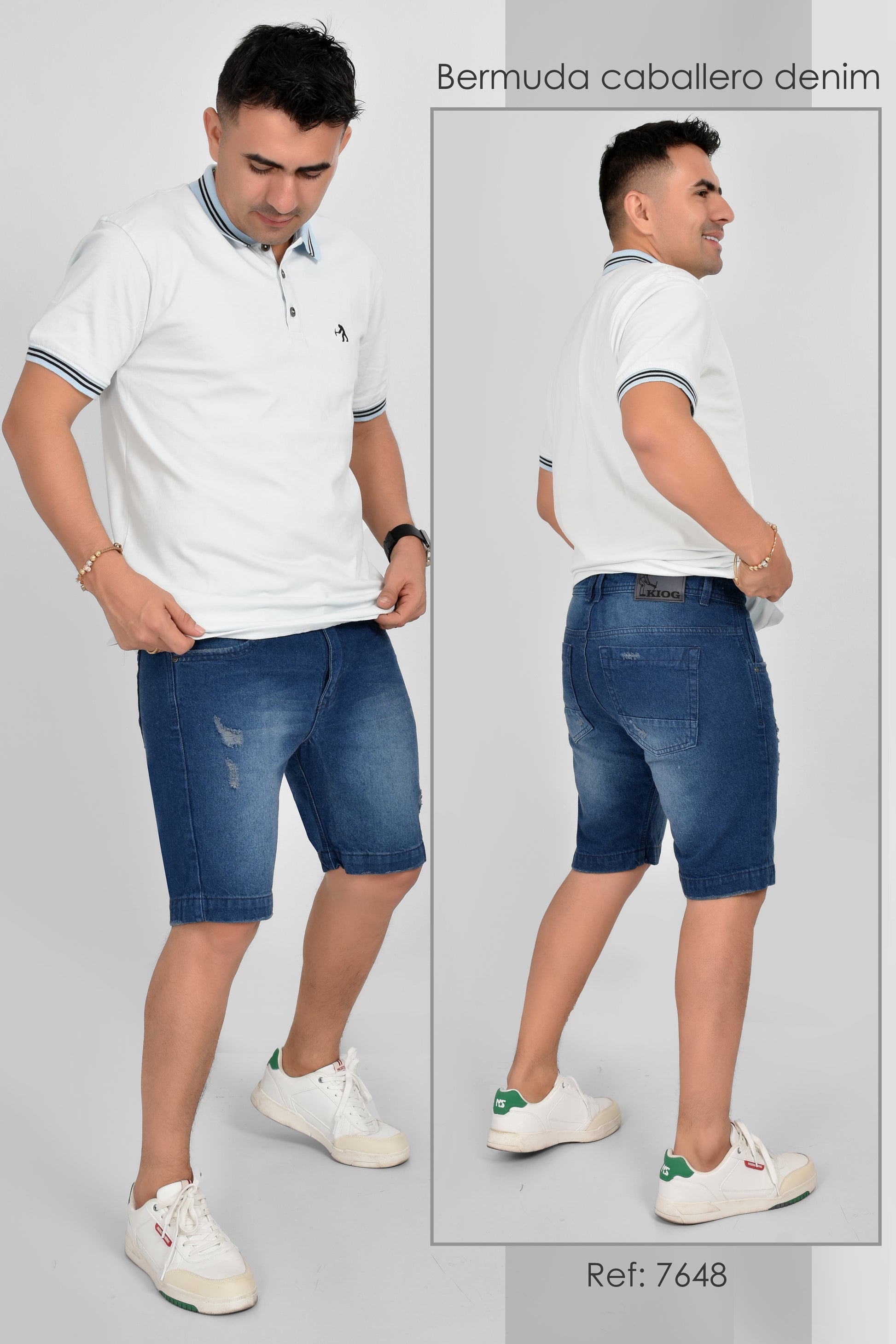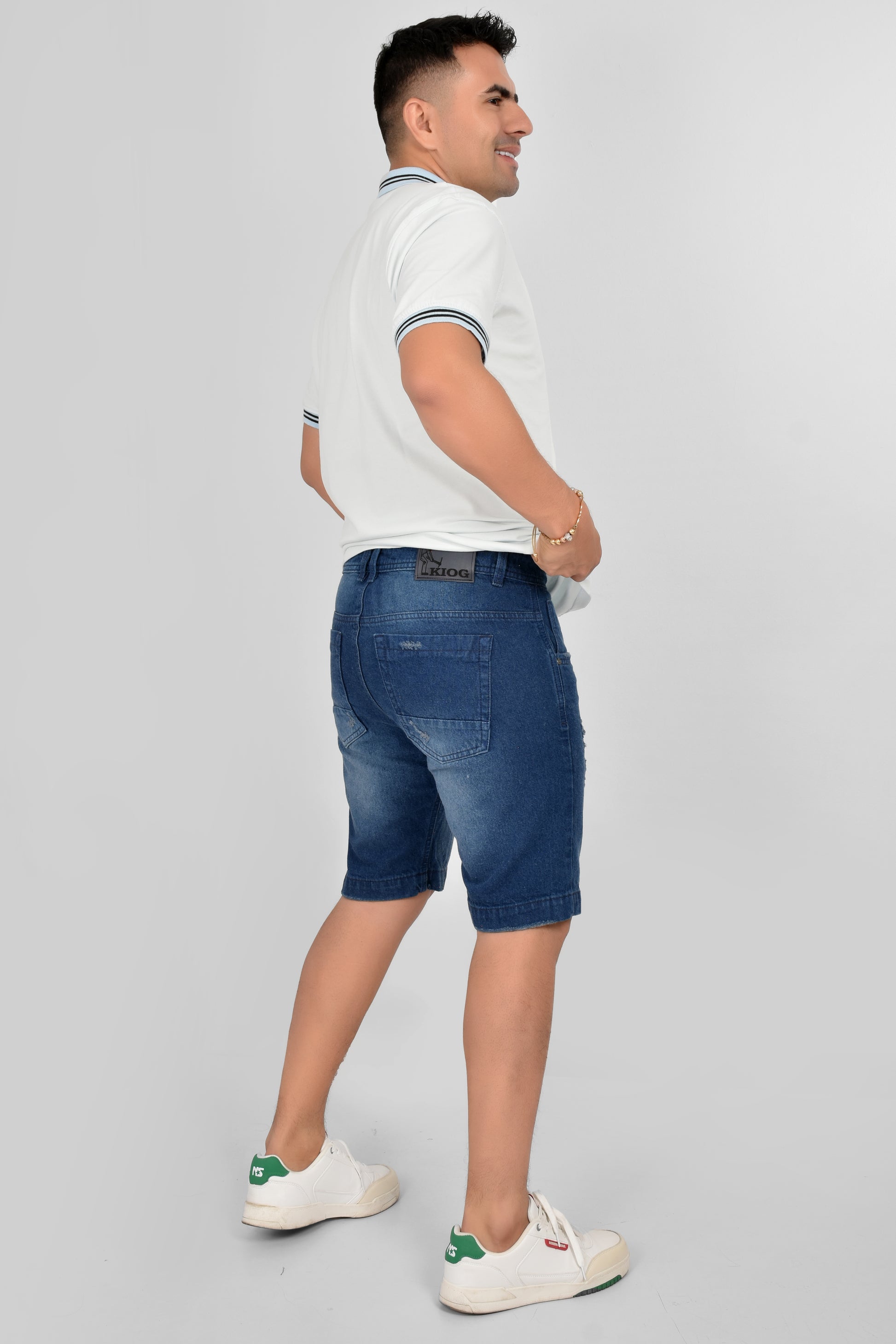Bermuda cargo denim para caballero en tono azul, con bolsillos laterales tipo cargo y bolsillos traseros funcionales. Su diseño relajado y corte a la rodilla ofrecen comodidad y un estilo casual ideal para la temporada de calor. Perfecta para combinar con camisetas, polos o camisas ligeras para un look fresco y versátil.