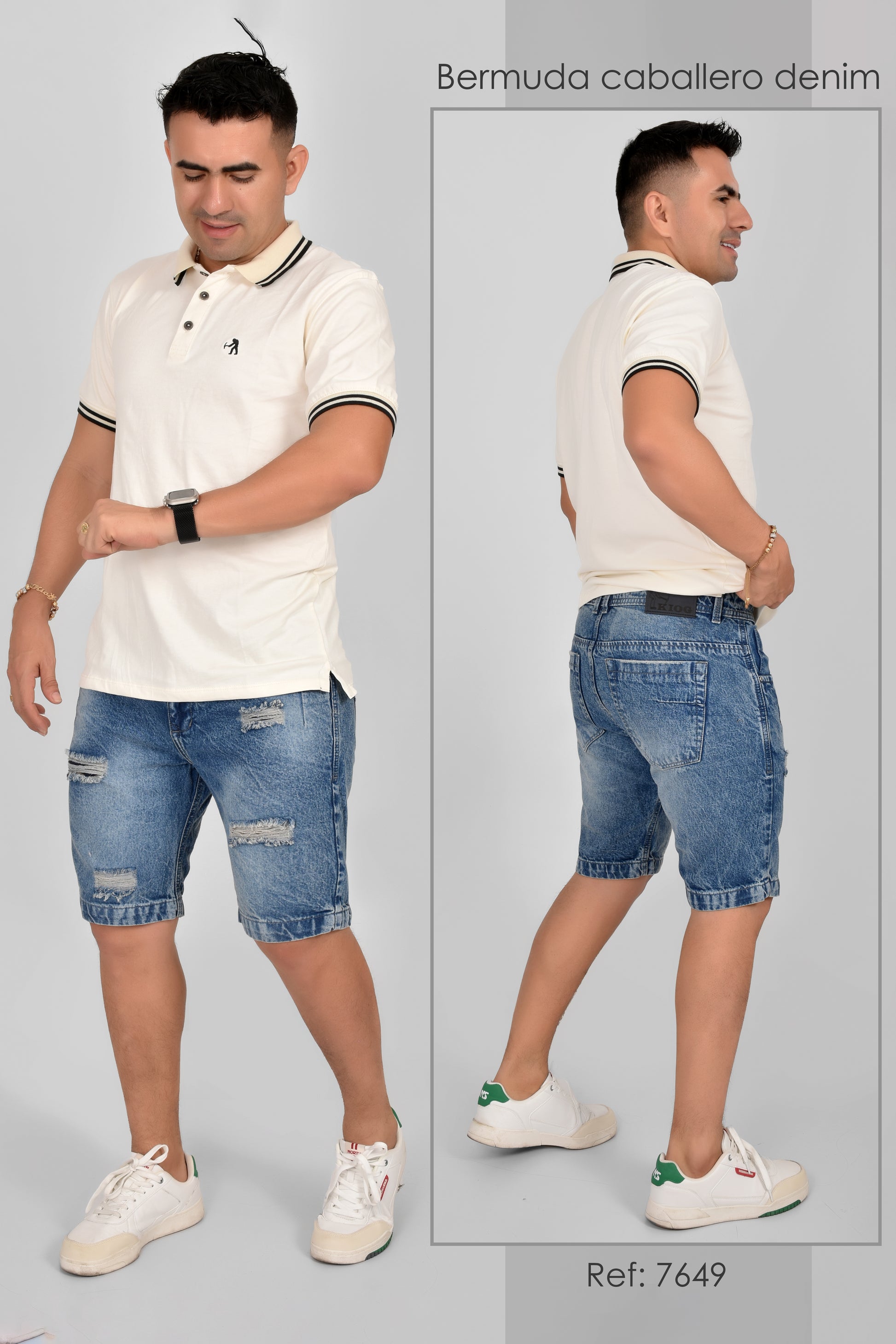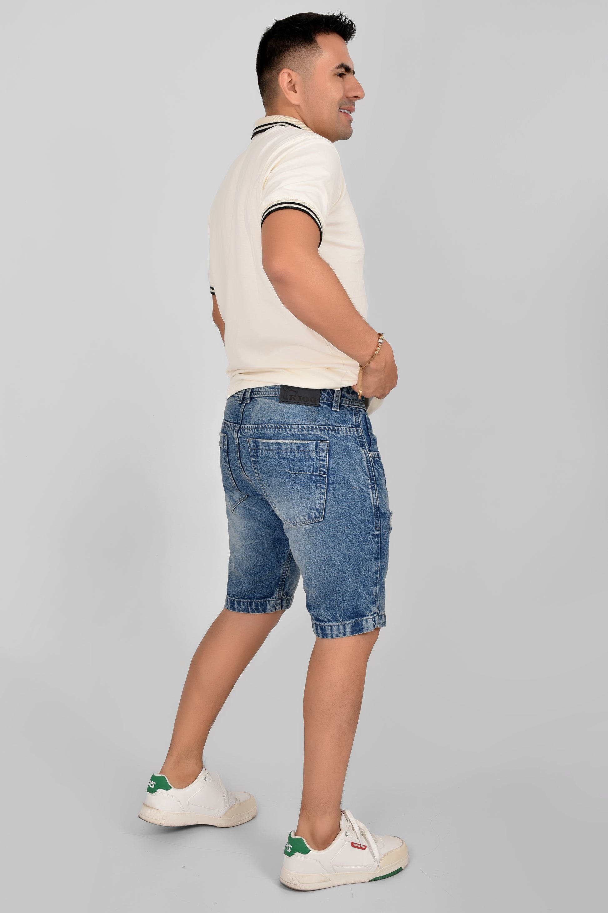 Bermuda cargo denim para caballero en tono azul, con bolsillos laterales tipo cargo y bolsillos traseros funcionales. Su diseño relajado y corte a la rodilla ofrecen comodidad y un estilo casual ideal para la temporada de calor. Perfecta para combinar con camisetas, polos o camisas ligeras para un look fresco y versátil.